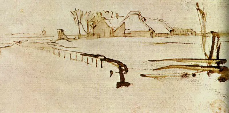 Főoldal Festők Rembrandt - Cottage Under Trees